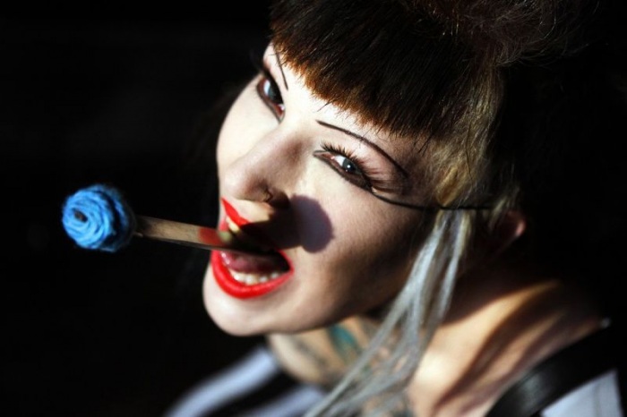 6. Эвелин Фрэнтик родом из Хельсинки, Финляндия. Она умеет глотать битое стекло и ходить по нему. «Это моя сбывшаяся детская мечта», говорит она. «Я всегда мечтала сбежать из дома и присоединиться к бродячему цирку. Я не привыкла просто сидеть и ждать, а есть стекло очень интересно».