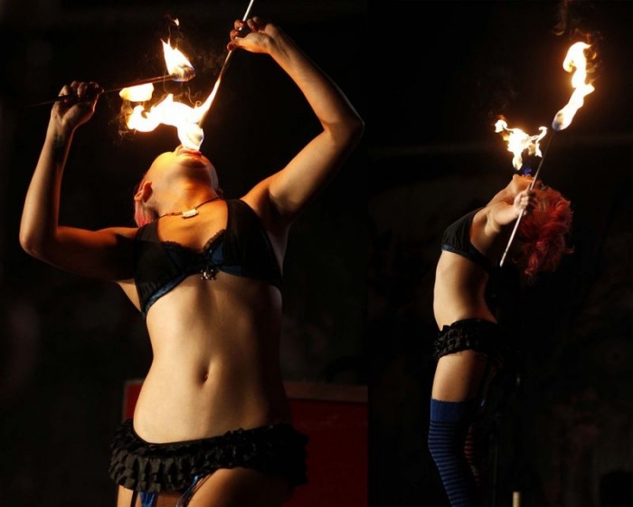 9. Выступление Джей Ли Бейт. «Брюс научил меня основам работы с огнем, а все трюки я придумывала сама», рассказывает она. «Работая с огнем, ты должен становиться уникальным, ни на кого не похожим, ты должен суметь сделать свое выступление абсолютно уникальным».