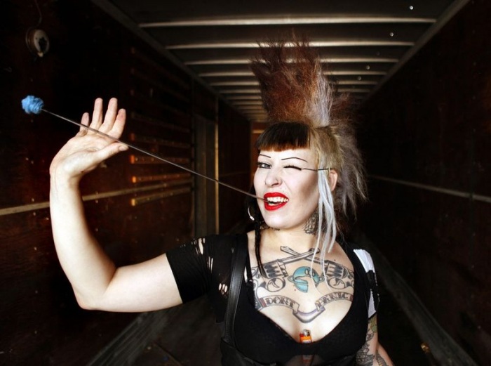 17. Глотательница шпаг и умеющая ходить по битому стеклу Челси Ноупэнтс. «Главное – научиться контролировать мышцы горла и пищевод. Дело здесь даже не в самих мышцах, а в голове».