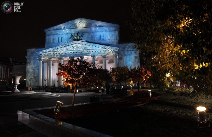 9. Фасад Большого театра после реконструкции, 27 октября 2011 года. После шести лет работ общей стоимостью 700 млн. долларов, отсрочек и скандалов, Большой театр готов снова занять почетное место среди культурных жемчужин мира. (REUTERS/Sergei Karpukhin)