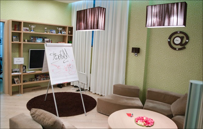 На самом верхнем (на восьмом) этаже ощутимо спокойней, да и обстановка посолидней — дерево, кожа и никаких «безделушек». Как несложно догадаться, там обитает руководство компании, правда, в день экскурсии я никого не застал
