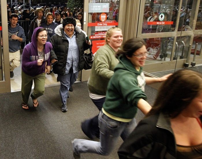 Начало сезона распродаж перед Рождеством и Новым годом в США всегда сопровождается ажиотажем. Следуя традиции, многие магазины предлагают первым покупателям очень значительные скидки (нередко — порядка 50%). Время от времени возникает давка, в некоторых магазинах происходят потасовки или выходки не совсем адекватных покупателей. «Черная пятница» 2011 года не стала исключением: в одном магазине женщина, чтобы одолеть соперников, использовала баллончик с перцовым газом.