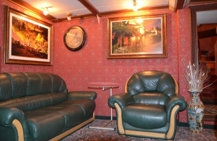 В Киеве, в уголке между Набережно-Хрещатицкой улицей и Новым Гаванским мостом стоит вот такой кораблик.