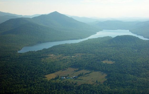 Необычный дом расположен в горах Адирондак на севере штата Нью-Йорк и внешне не отличается от других загородных коттеджей на озере Саранак. Он окружен лесом площадью около 8 гектаров, в котором есть взлетно-посадочная полоса для самолета.