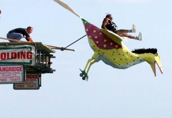 Лето всегда богато на праздники. Великобританский город Богнор в июле становится местом проведения интересных соревнований. Участники состязаний разбегаются по широкой платформе, построенной над поверхностью моря, и прыгают. Задача «человека-птицы» — пролететь как можно дальше, используя при этом самодельные крылья.