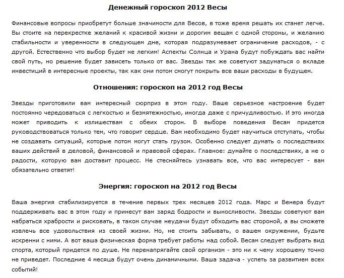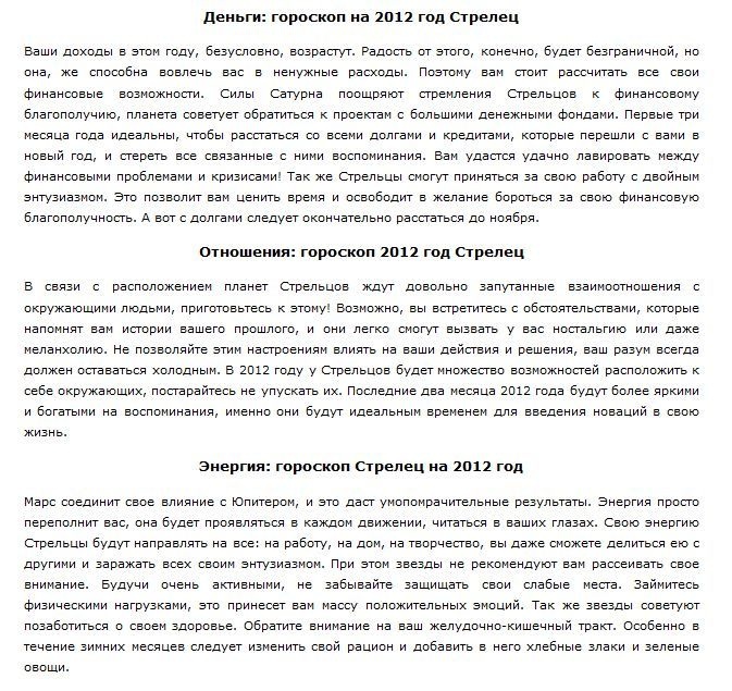 Цель индивидуального гороскопа на 2012 год — прояснить будущие действия и дать совет по улучшению собственной жизни в 2012 году, он сможет учесть все нюансы дня вашего рождения и их влияние на вашу судьбу. Благодаря астро-нумерологическому прогнозу, вы узнаете главные тенденции наступающего года для себя лично.