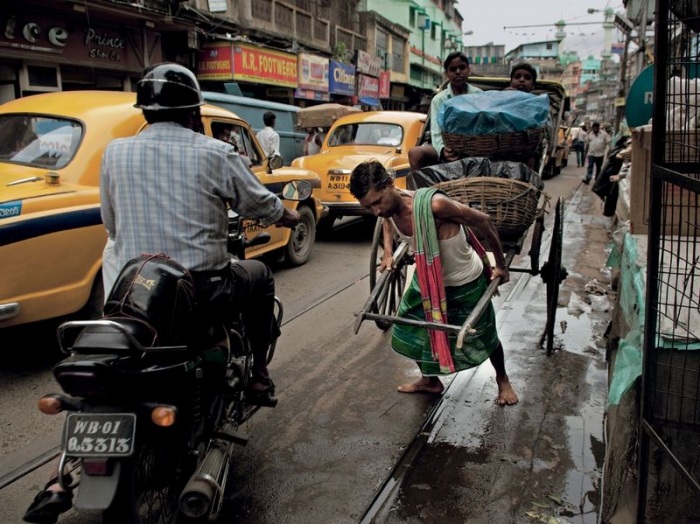 Эми ВитальРискуя нарваться на штраф, рикша сокращает свой путь, направляясь против движения. Представители его профессии, как правило, неграмотны, и им трудно найти себе другое занятие.