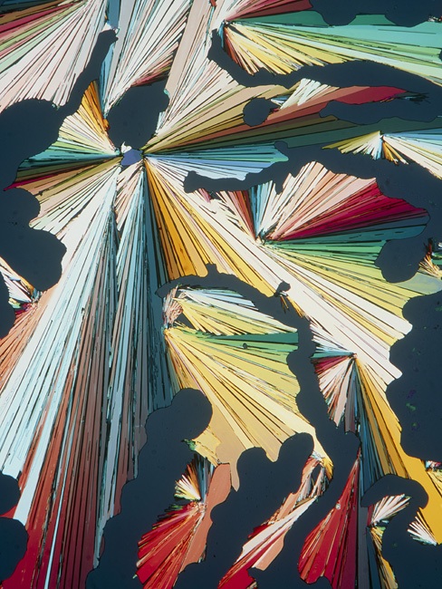 Холестерическая фаза 55% CB15 в резисторах E48, используемых в производстве ЖК-мониторов, в 100-кратном увеличении