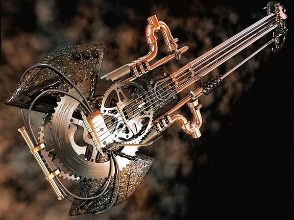 Это «Пикассо», и она, несомненно, похожа на то, что придумал бы известный художник-сюрреалист. Пикассо изготавливалась целых 2 года, у нее 4 грифа и 42 струны, и вы вряд ли смогли бы играть на ней, имея только 2 руки: