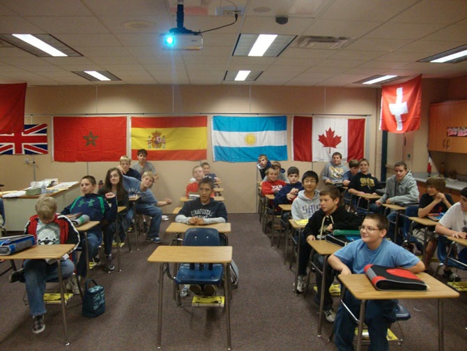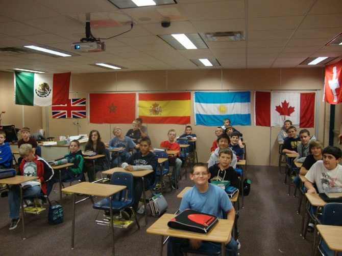 Некоторые уроки, такие как �Sex education� преподаются раздельно мальчикам и девочкам. В этой школе такая практика распространяется на многие другие предметы, поэтому в классе только мальчики и почему-то одна девочка.