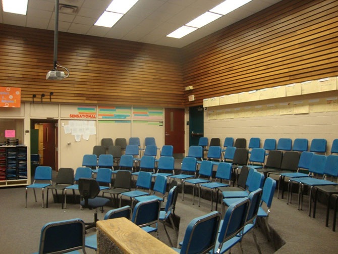 Дети, родители которых предпочитают забирать детей самостоятельно, после окончания уроков выстраиваются в шеренгу около выхода из школы. На выходе вдоль дороги выстраивается очередь автомобилей с родителями. Передача детей происходит под руководством одного или нескольких учителей, чтобы удостовериться, что ребенок признает людей в машине.Библиотека. Слева находится открытый компьютерный класс, где также шел урок. Во всей школе беспроводной интернет.