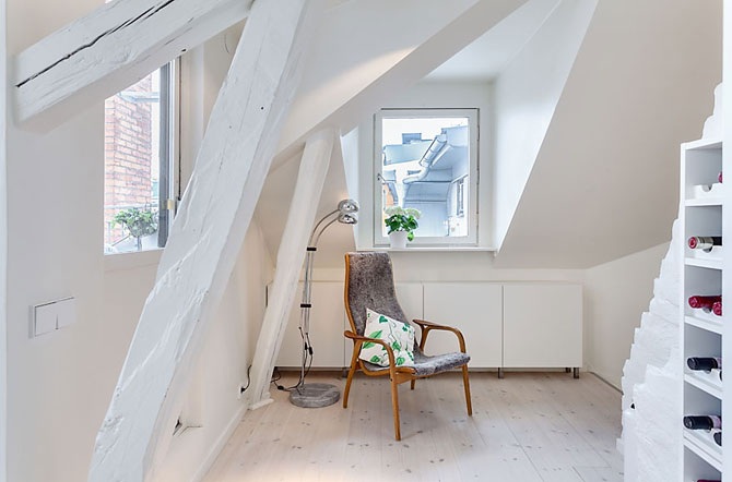 Оформлена резиденция в скандинавском стиле, в интерьере преобладают светлые оттенки с яркими акцентами в виде аксессуаров. Стоимость пентхауса составляет $1,125 миллиона.