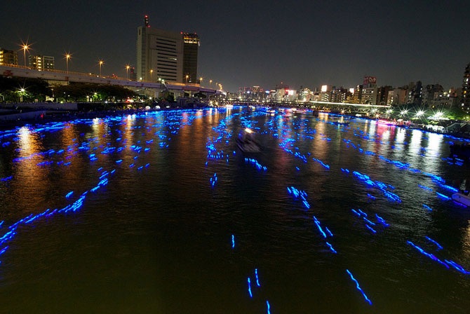 Спуск шаров был приурочен к традиционному фестивалю Хотару. По окончании фестиваля все шары были выловлены специальными сетями.