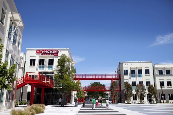 Планируется, что площадь Хакеров станет культурным центром городка, здесь работники смогут встречаться для походов в кино и на вечеринки. Красные мосты покрашены в тот же цвет, что и мост Золотые Ворота в Сан-Франциско, намекая на близость к этому городу.