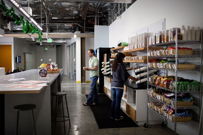 Здесь сотрудники Facebook обедают, отдыхая на диванах. В интернет-индустрии сейчас развернулась настоящая �война за таланты�, компании ищут любые возможности мотивации ценных сотрудников, заявил недавно финансовый директор Google Патрик Пичетт (Patrick Pichette).