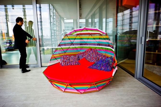Посередине офиса – большой «стручок», спрятанный за бахромой…