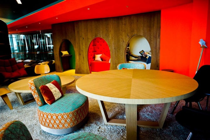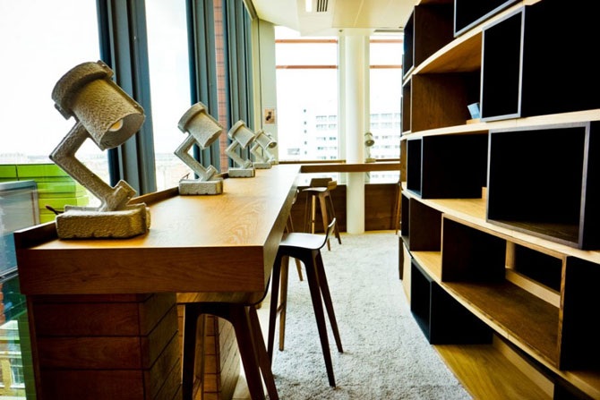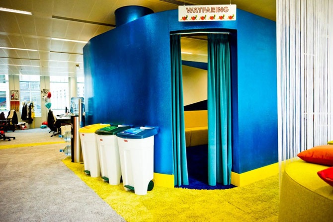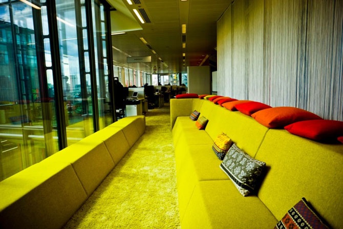 Раньше Google снимал два этажа возле Victoria Station, ресторан и атмосфера были отличными, но само оформление мало чем отличалось от других помещений в Сити. Новое помещение выполнено в экологических мотивах и доминантных ярких красках.