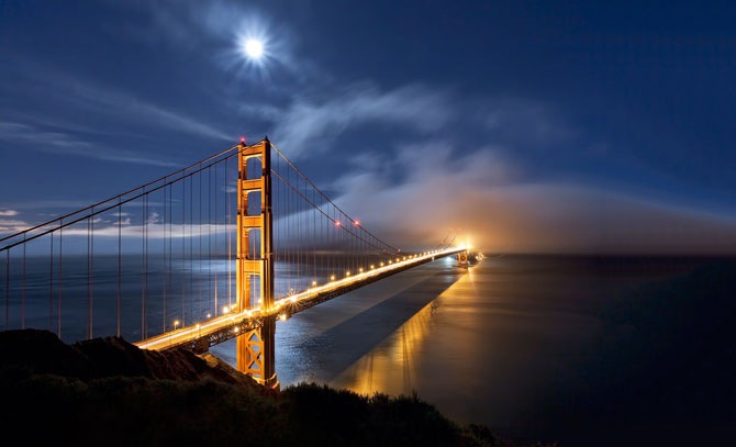 Во время знаменитых туманов мост Золотые Ворота выглядит особенно завораживающе.