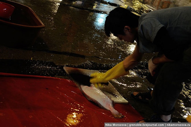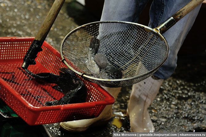 Вообще, с рыбой тут не церемонятся. У каждого продавца имеется свой багор