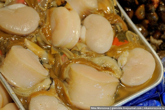 Тут все уже очищено и готово к применению: и морские гребешки, и мидии, и другие моллюски, названия которых мне неизвестны