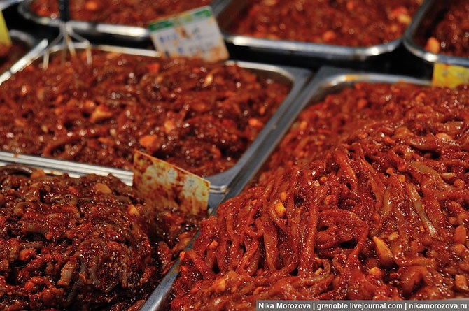 Ну а теперь мы добрались до �изюминки� корейской кухни. Как хорошо, что фотография не передает запах. А то бы вы сразу разбежались, долистав до этих фотографий. Переходим в раздел соусов.