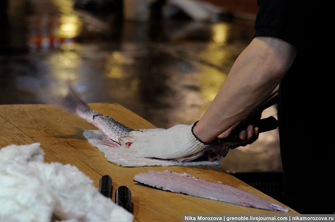 Аккуратнейшее сашими. Понаблюдаем за процессом