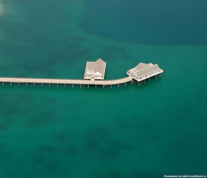 «Мир» соединен с материком только водным и воздушным сообщением. От больших волн острова защищает искусственно возведенный волнорез: