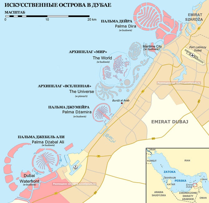 Давайте взглянем на карту всех искусственных островов в Дубае: