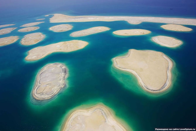 Начнем c пальмовых островов. Они находится в ОАЭ, в эмирате Дубай. В состав архипелага входят три крупных острова, имеющие каждый форму пальмы.