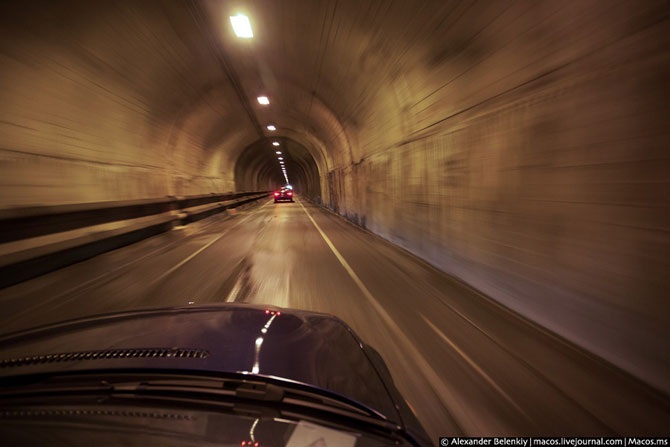 Вот тоннелей в Америке почти нет, даже в горных районах. Обычно предпочитают построить трассу в обход гор, но сохранить её полноценным хайвеем.