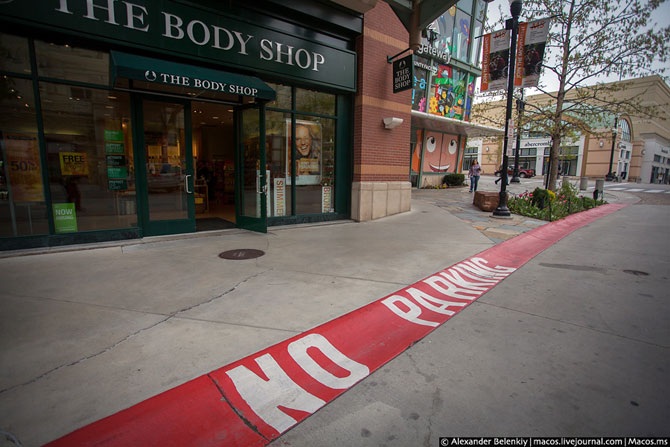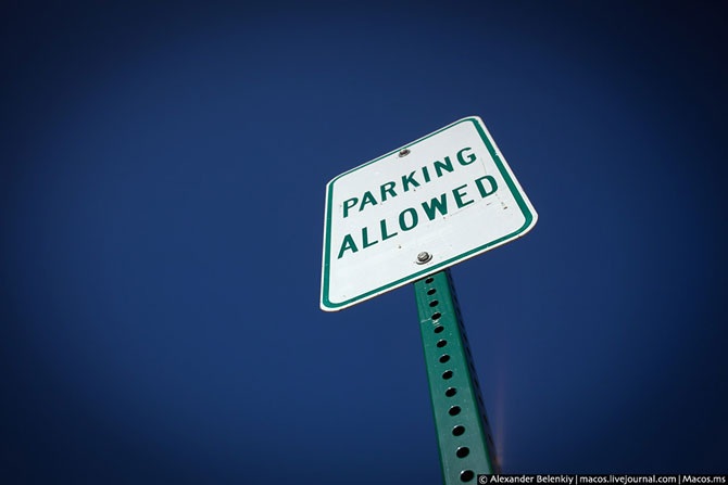 Там, где парковка не запрещена – она разрешена. Но конечно, нельзя ставить машину на перекрёстке, на тротуаре даже одним колесом, нельзя мешать своим автомобилем другим участникам движения. А ещё посмотрите на то, как сделаны американские знаки. Они держатся на болтах, и если нужно повесить другой знак или поместить временнный, он просто прикручивается к тому же столбу чуть ниже.