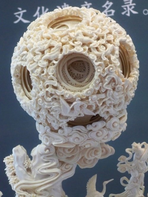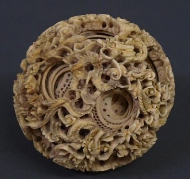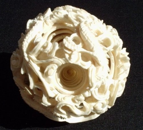 Китайские шары-головоломки – это богато декорированные шары, состоящие из нескольких концентрических сфер, каждая из которых вращается независимо от других. Все сферы украшены резьбой из того же материала. Хотя изначально они делались только из слоновой кости, в наши времена можно найти шары-головоломки из синтетической слоновой кости, смолы, дерева, нефрита и других материалов. Эти детальные произведения искусства обычно состоят из 3-7 слоев, а самый большой шар-головоломка сделан из 42 концентрических шаров, располагающихся один в другом. Хотя внутренние шары могут управляться посредством выравнивания отверстий, китайские шары-головоломки получили свое название от людей, которые веками оттачивали свое мастерство в создании таких предметов.