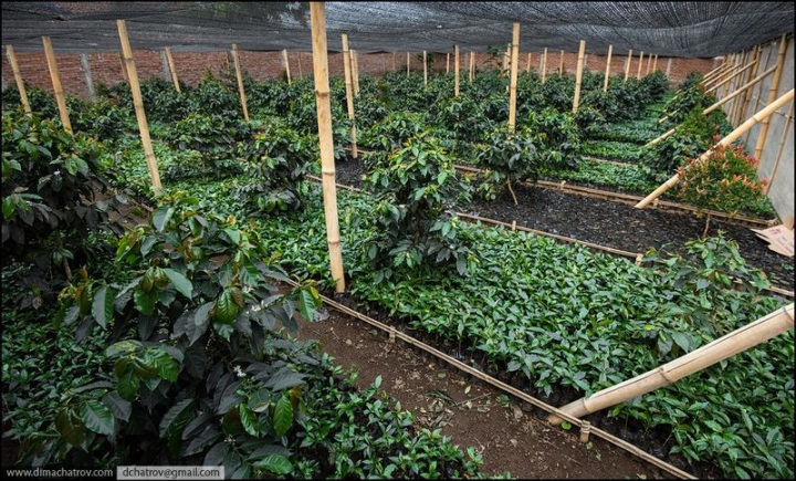 Вот как выглядит кофейная рассада, заботливо укрытая сеткой от вредителей и жаркого Яванского солнца.