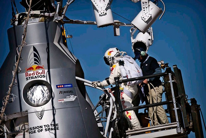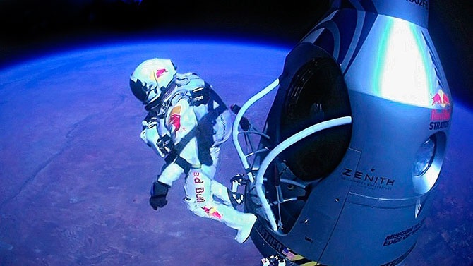Сначала планировалось совершить прыжок с высоты 36 километров. Однако только на уровне 39 километров австрийцу Баумгартнеру удалось замедлить неконтролируемое поднятие несущего защитную капсулу огромного стратостата, выпустив из него часть гелия. Затем «Феликс бесстрашный», как теперь зовут его в родных местах, сделал шаг в космос…