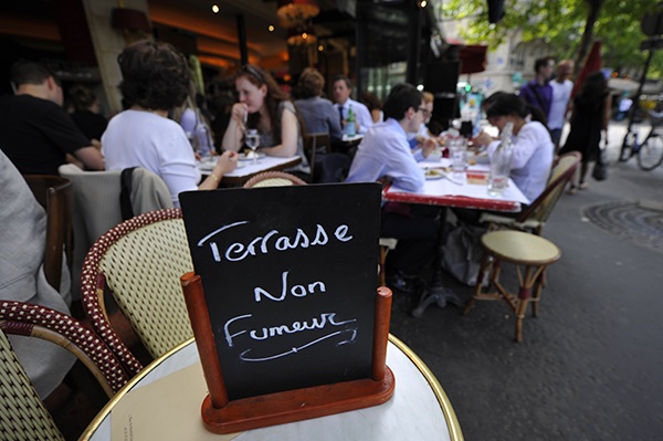 В течение почти года — с 1 февраля 2007-го по 1 января 2008-го — французам разрешалось курить в ресторанах, кафе и на дискотеках, но сейчас и они являются местами, где курение запрещено. На предприятиях и в учреждениях для курильщиков оборудуют специальные помещения, но площадью не более 35 кв. м. и с полным запретом на продажу любых напитков — даже воды. Правда, в отличие от большинства других стран ЕС, французские власти не стали вводить больших штрафов для владельцев заведений: нарушителям придется заплатить лишь вдвое больше, чем нетерпеливому курильщику — €135. Зато сейчас нередки такие сцены: внутренние помещения ресторанов и кафе почти пусты, зато на открытой террасе свободного столика не найти днем с огнем.