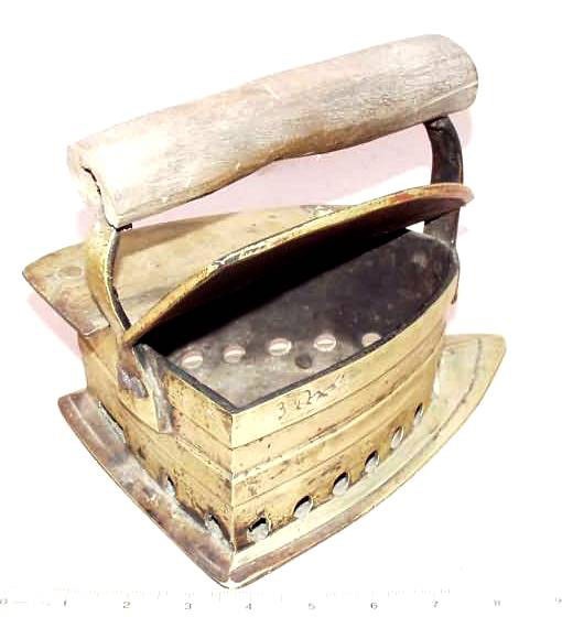 На смену жаровне с ручкой пришёл паровой утюг. Угли в нём помещались внутрь корпуса и закрывались крышкой, а сверху, для лучшей тяги, пристраивали трубу. Чтобы угли лучше грели, делали специальные отверстия по бокам. Размахивая таким утюгом вперёд и назад, усиливали вентиляцию.