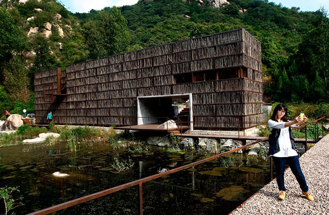 Интересное здание библиотеки в Пекине. На отделку фасада ушло около 45000 палок и 157000 долларов.