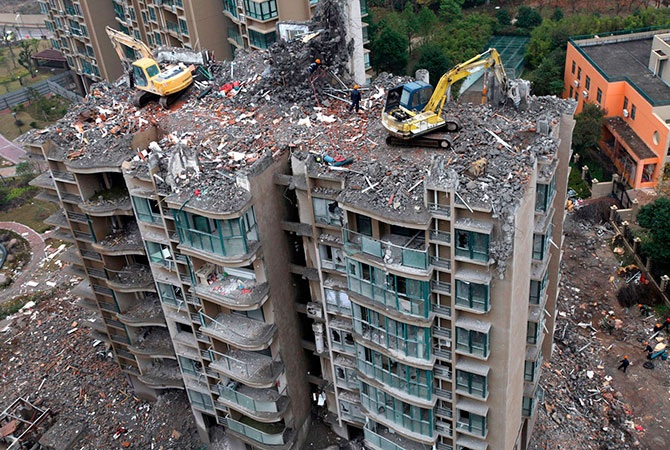 Снос здания в городе Тайчжоу, провинция Чжэцзян