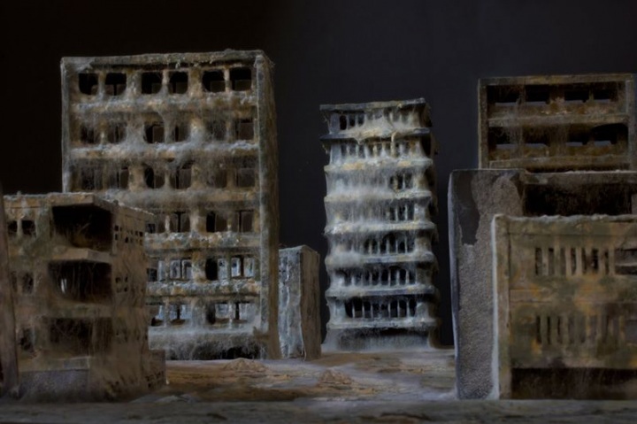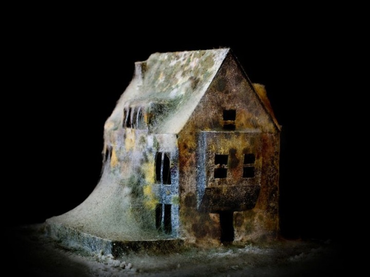 Итальянский художник Дениэл Дель Неро создал несколько архитектурных мини-моделей. Все очень просто: он сделал небольшие города из черной бумаги, присыпал их мукой и подождал, пока они покроются слоем плесени. Эффект получился неожиданно красноречивым. Мы словно смотрит в далекое будущее, в эпоху, когда человечества уже давно не будет на земле.