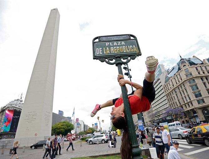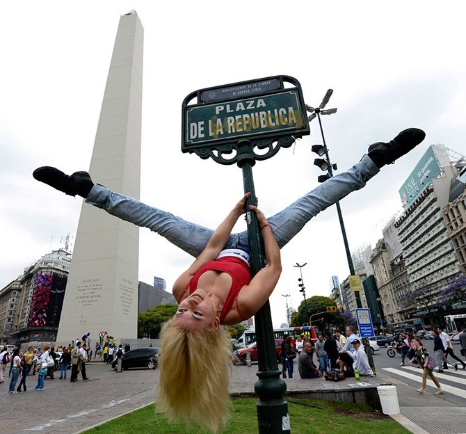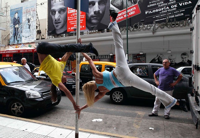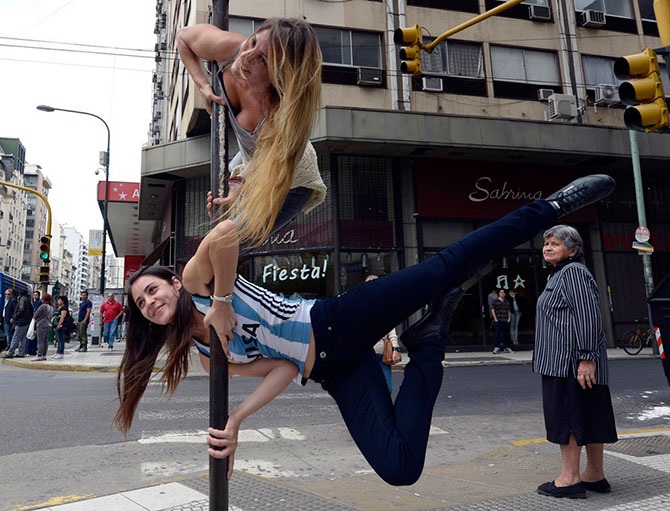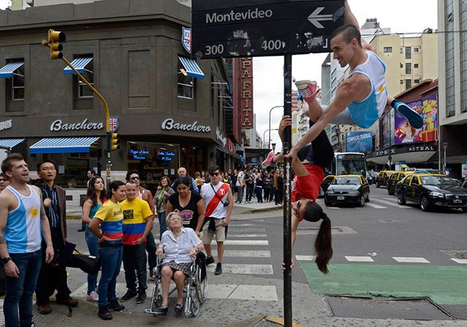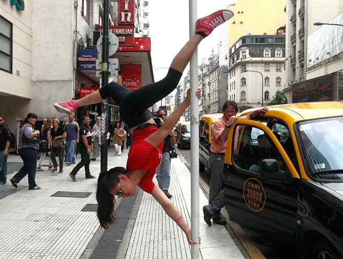 В Буэнос-Айресе, Аргентина, участники спортивно-танцевального конкурса Miss Pole Dance South America 2012 устроили незабываемое уличное представление для местных жителей. Танцоры со всех стран Южной Америки демонстрировали разнообразные трюки, используя вместо пилона дорожные указатели, фонари, рекламные щиты, металлические заборы и даже перила.