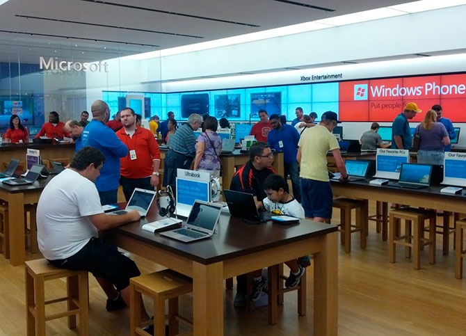 За три года в Соединенных Штатах открылось уже 66 отделений, в которых можно приобрести не только MS Windows и MS Office, но и смартфоны, ноутбуки, игровые приставки и другую продукцию компании. В 2013 году электронный гигант планирует открыть двери своих магазинов и в Европе.