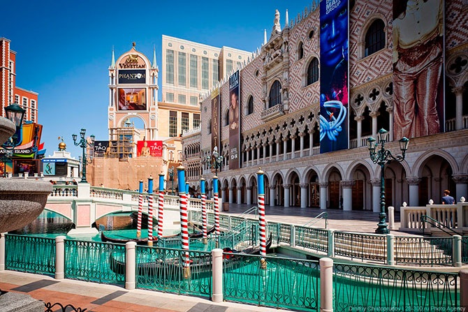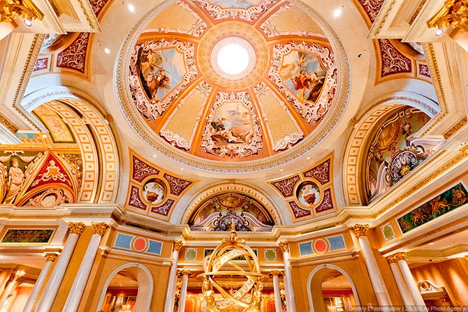 Внутри каждого отеля есть свои улицы, напоминающие улицы городов, в стиле которых выполнен тот или иной отель. На этих улицах хоть нет рекламы, но здесь все искусственное, даже небо.