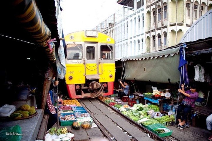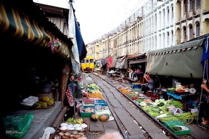 1. Как только поезд проезжает, торговцы снова поправляют лотки и продукты, и жизнь на рынке продолжается, как будто ничего и не произошло. В конце концов, рынок был здесь еще задолго до того, как через него проложили железную дорогу в 1905 году.