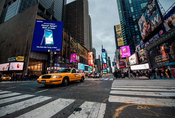 Вот я и добрался до Таймс-сквер. Яркость рекламы поражает даже днем: