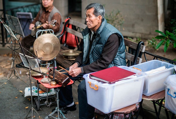Игры тоже встречались разнообразные. Мне это напомнило шашки, но вряд ли это были они. Столько людей собирается в парке, чтобы поиграть в настольные игры, чтобы поиграть музыку или просто помедитировать на лавочке. В нашей стране такое было только в фильмах когда мужички собирались во дворе играть в шахматы, шашки, домино. И то далеко не в таких количествах: