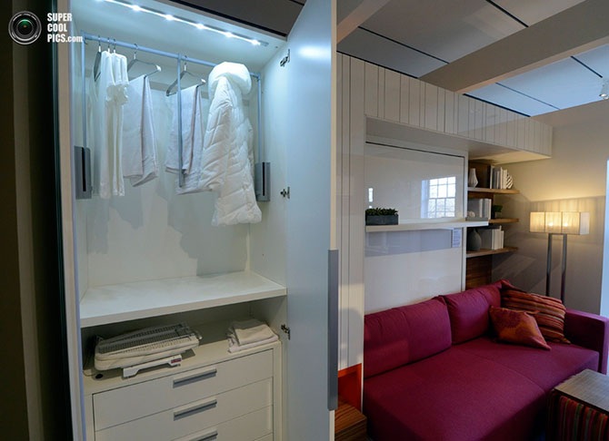 Джулия Грандберг отдыхает на кровати по-американски — прямо в обуви. Кровать, кстати, тоже складывается к стене.
