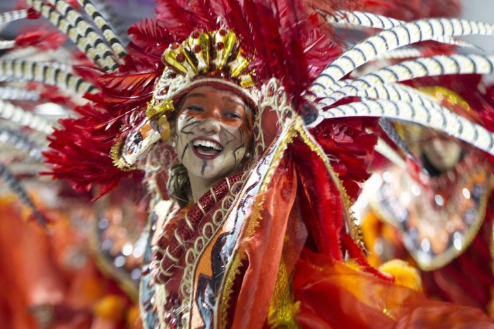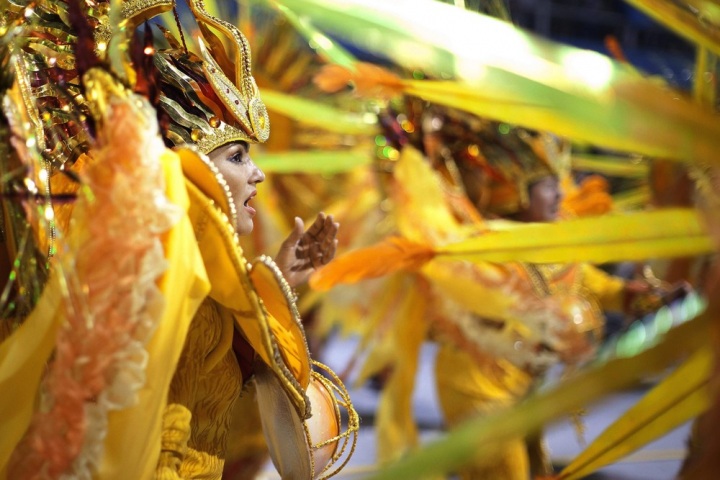 4. Танцоры из школы самбы Алегре во время парада в Сан-Паулу. (Photo by Andre Penner/AP Photo)