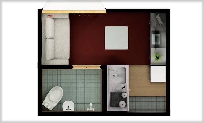 6 татами (10 кв. метров), здесь уже присутствует ванная комната, правда
