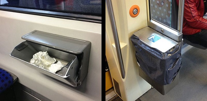 29. В каждом вагоне есть мусорки. Удивительно, но из-за этого в поездах очень чисто.