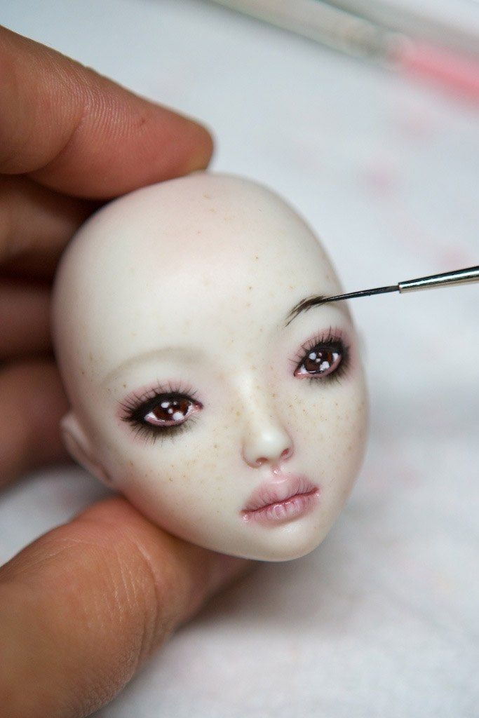 Работа с полиуретаном занимает у меня очень много времени (лишь незначительно меньше, чем с фарфором) – в частности, сборка и роспись. Я ведь собираю своих кукол не на эластичный шнур, а на металлические пружины. Если же говорить о росписи, то когда я расписываю фарфоровую куклу, то чувствую краску и материал, кисть становится продолжением руки.
